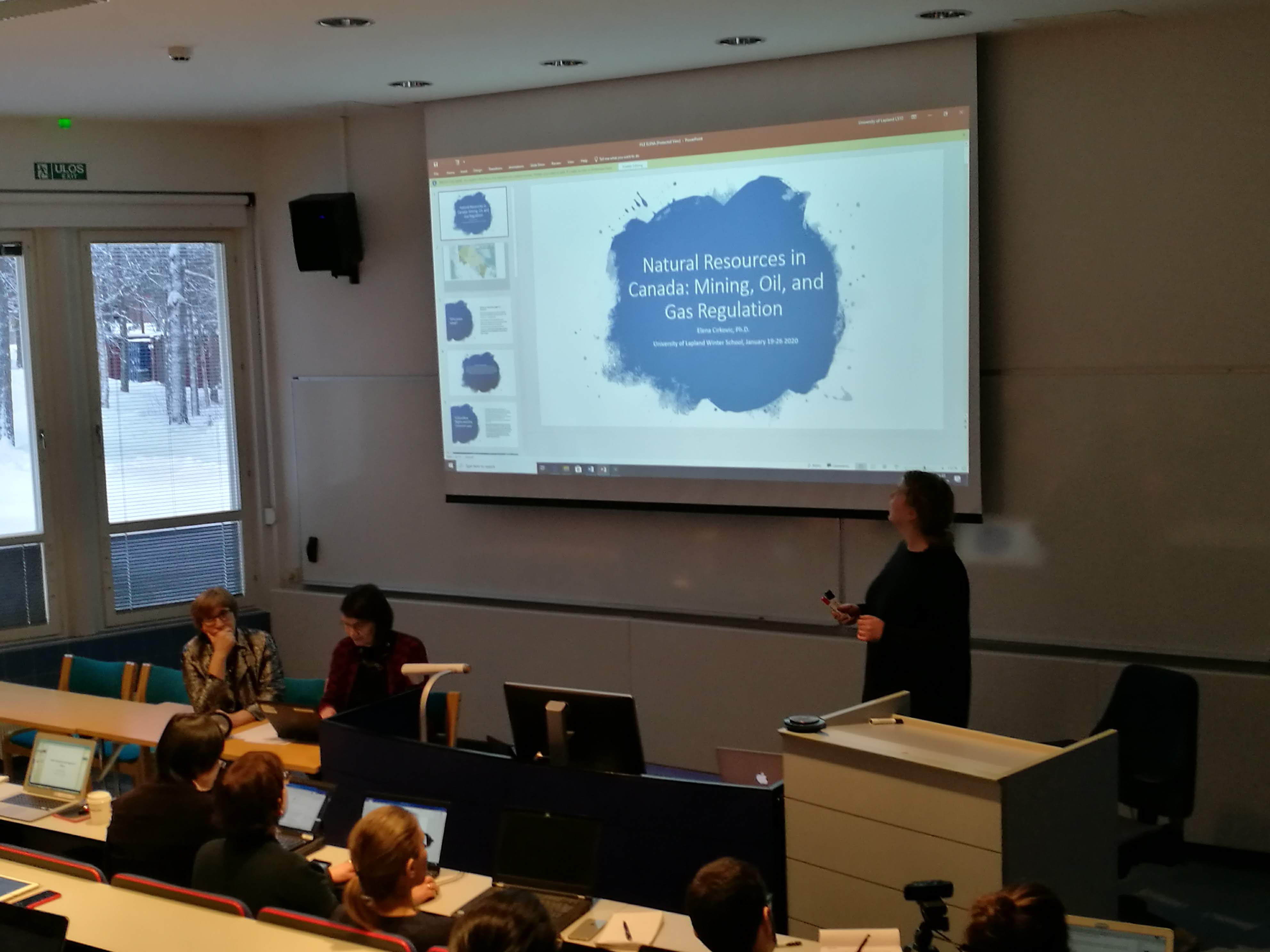 This intensive study program took place from the 19th to the 26th of January 2020 in Rovaniemi, the capital of Lapland, the northern most region in Finland. The winter school gathered around forty students chosen by the three partner universities, who followed teachings based on two of the courses created in the context of the programme: "Multilevel Governance of Natural Resources in the Arctic" et "Arctic Indigenous Peoples Law".
